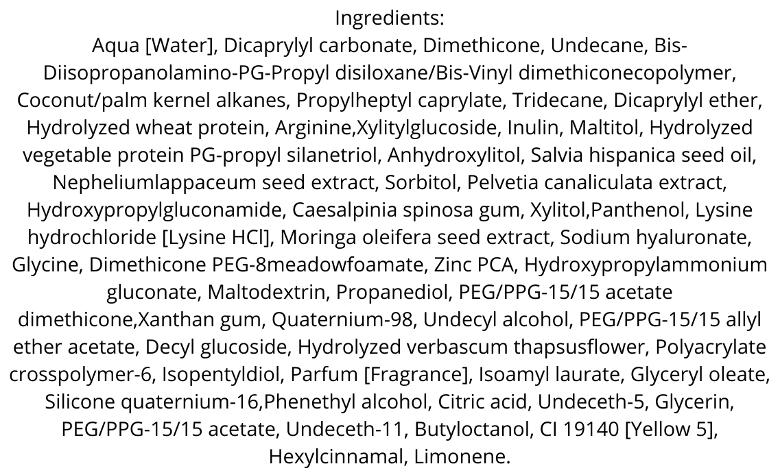 La sua texture leggera e impercettibile avvolge il capello lasciandolo fluido, setoso e visibilmente più sano. La formula è composta per oltre il 90% da ingredienti di origine naturale e vegetale.